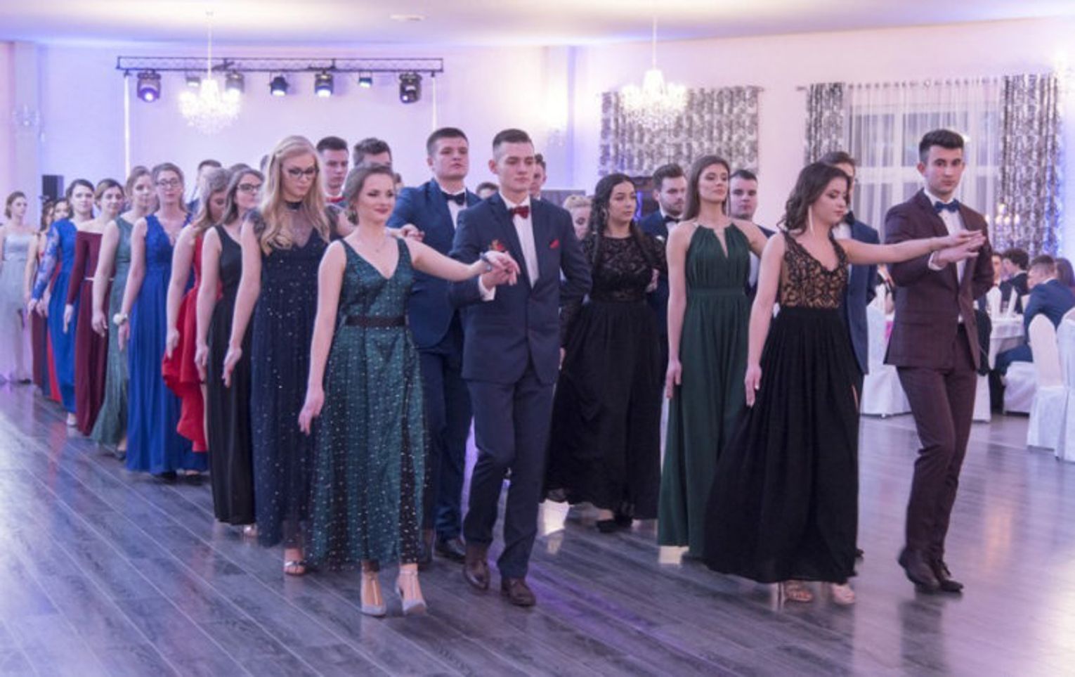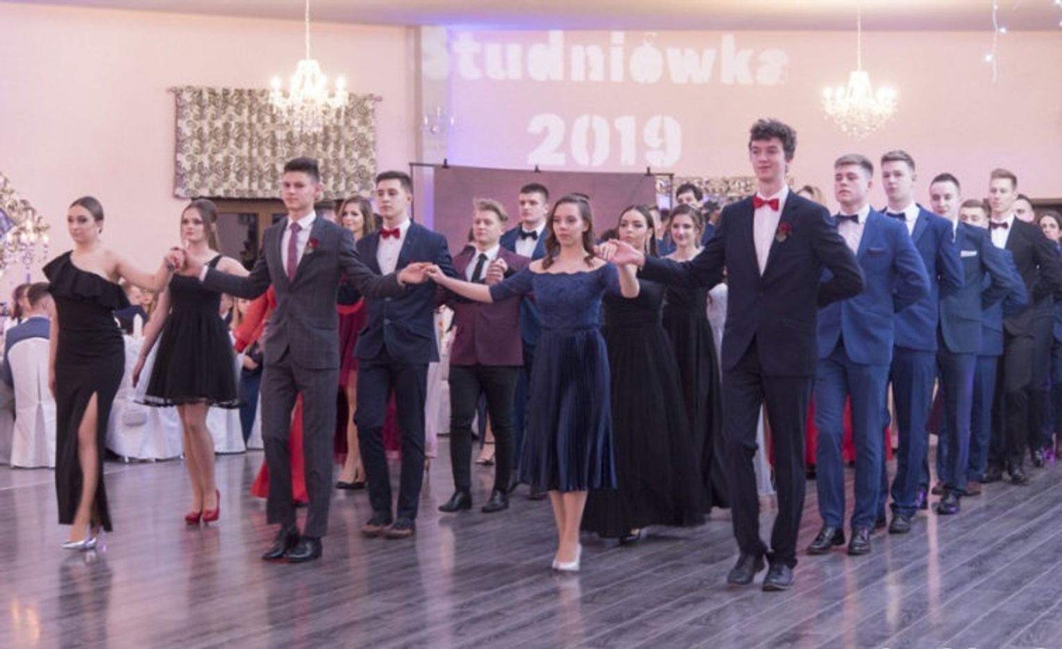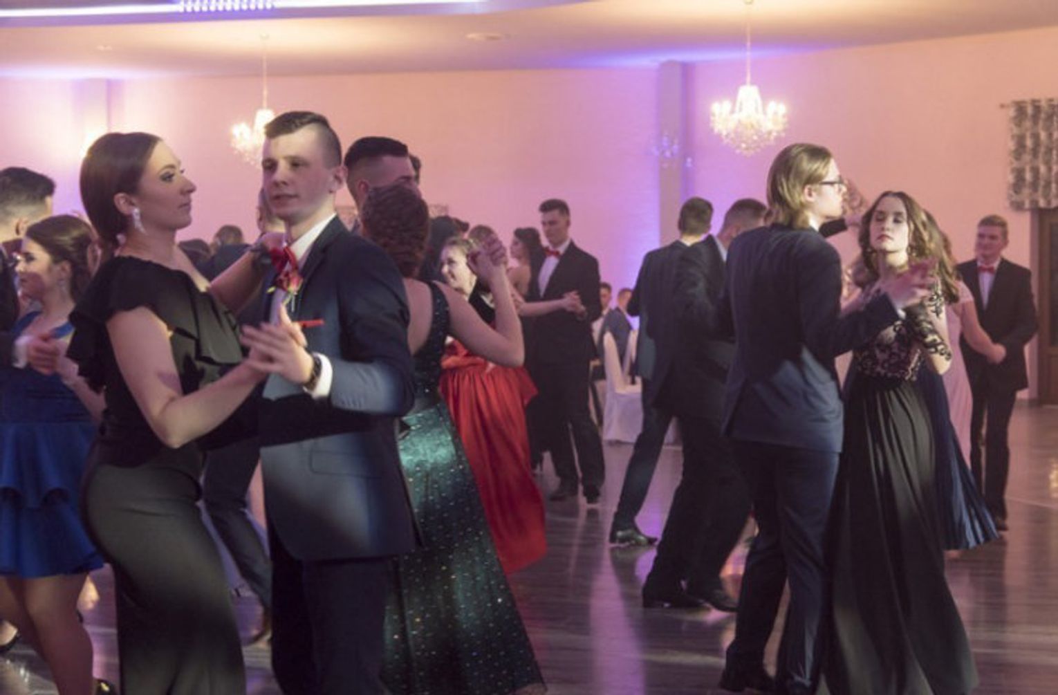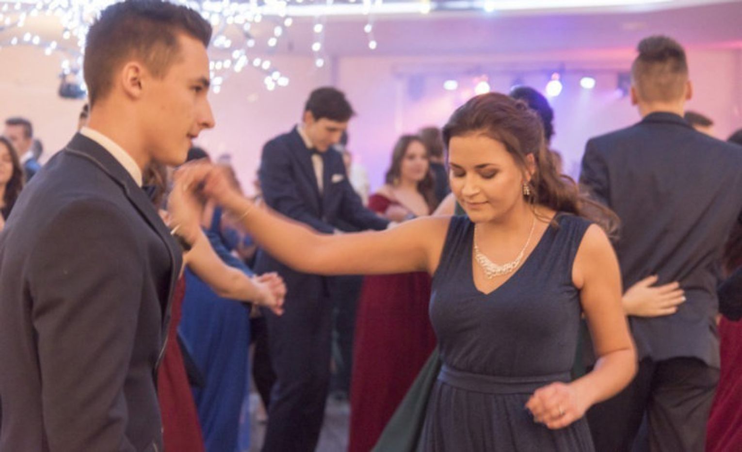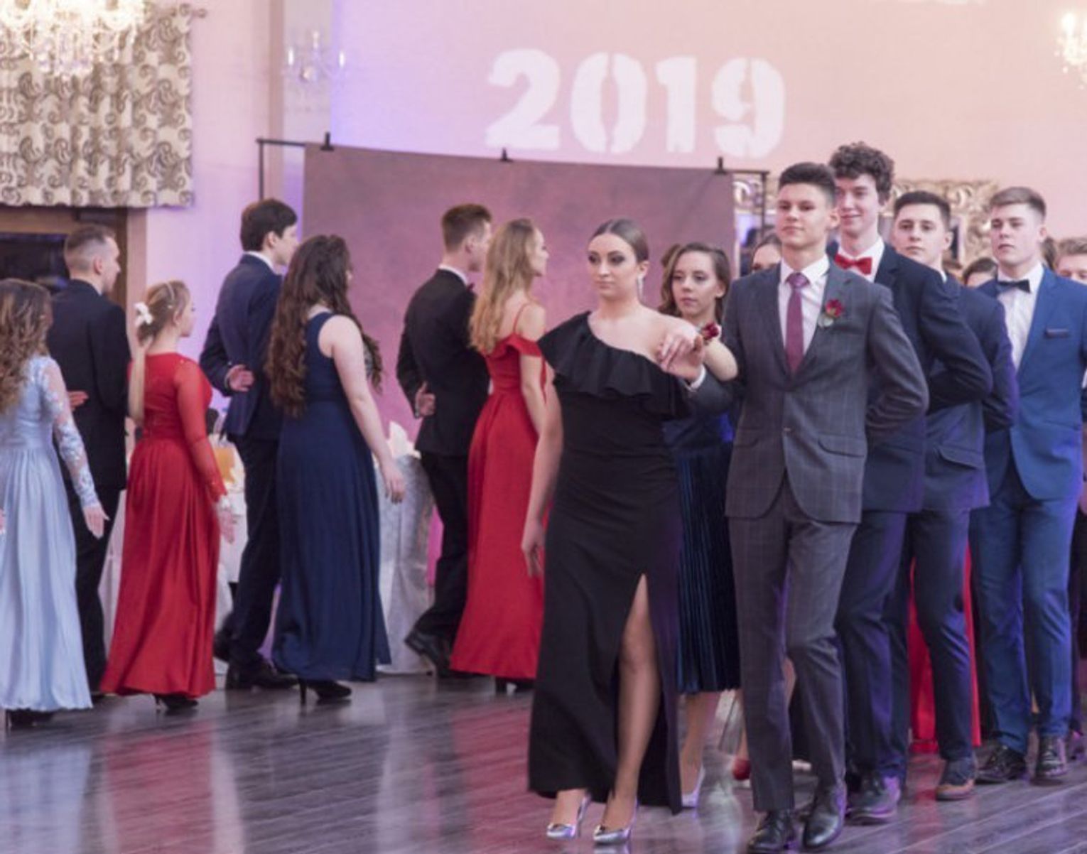 Studniówkowy Bal rozpoczął się tradycyjnym polonezem, a potem młodzież i nauczyciele ruszyli do tańca w rytmach dobrze znanych. Doskonałej zabawie sprzyjała nie tylko dobra muzyka, ale także dodatkowe atrakcje, takie jak konkurs tańca, muzyczno – taneczny „pociąg” przez kontynenty i kraje oraz fotobudka, w której uczestnicy mogli zrobić sobie zabawne zdjęcia.