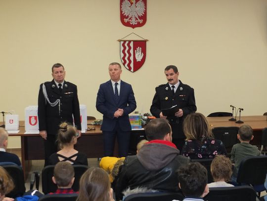 W sali posiedzeń Urzędu Gminy Brodnica laureaci eliminacji miejsko –gminnych Ogólnopolskiego Konkursu Plastycznego „Zapobiegajmy pożarom” otrzymali nagrody za udział w tym konkursie.