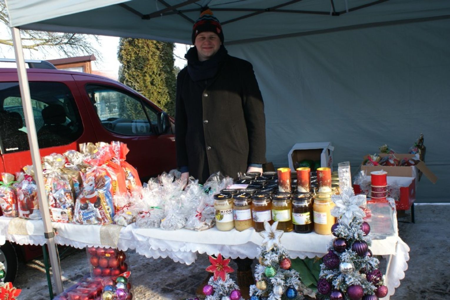 Było dużo urokliwego rękodzieła, wyborne przysmaki i bogaty wybór upominków dla każdego. Nic więc dziwnego, że dla mieszkańców gminy, jak i gmin sąsiednich, była to atrakcja i okazja do udanych zakupów. Choć było zimno, to słońce i koksowniki rodem z PRL-u pomagały przetrwać ujemne wartości na termometrze. Na gości czekała stajenka z żywymi zwierzętami. Wśród nich była mama oślica z młodym, owca z dwoma jagniętami i króliki.