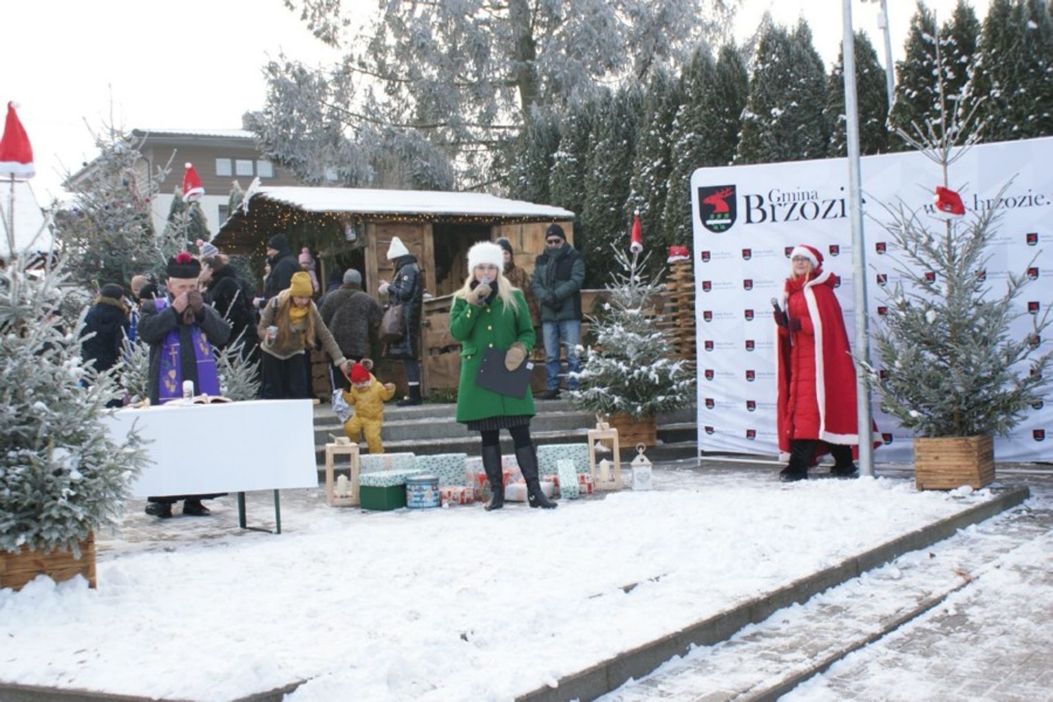 Gości i mieszkańców przywitała wójt Danuta Kędziorska-Cieszyńska, a po krótkim wstępie ksiądz kanonik Wiesław Wyszkowski poświęcił stajenkę. Po nim przemawiali i składali życzenia świąteczne przybyli goście, a wśród nich senator RP Ryszard Bober, przewodniczący Rady Powiatu Roman Pytlasiński i przewodnicząca Rady Gminy Brzozie Maria Florkiewicz. Byli również radni powiatowi Arkadiusz Orłowski i Małgorzata Smoczyńska oraz sekretarz Miasta i Gminy Górzno Radosław Przybylski. Część oficjalną zakończyło przekazanie przez harcerzy z 126 DH Knieja z Wielkiego Leźna Betlejemskiego Światła Pokoju 2022 (coroczna skautowa i harcerska akcja przekazywania przed Świętami Bożego Narodzenia symbolicznego ognia, zapalonego w Grocie Narodzenia Chrystusa w Betlejem.)