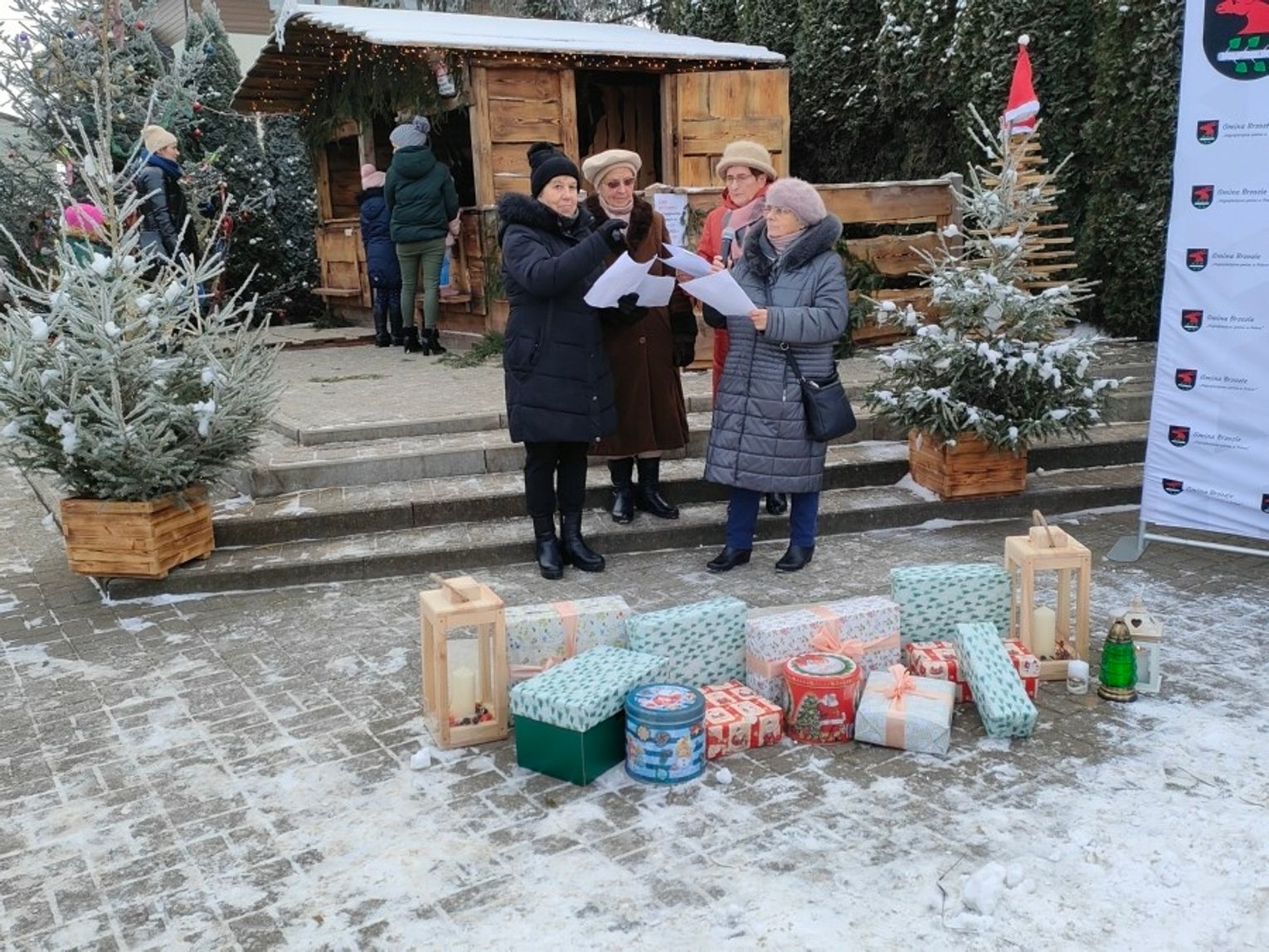Coroczny jarmark jest także okazją do wręczenia nagród w konkursie organizowanym przez Gminną Bibliotekę Publiczną w Brzoziu. “Projekt Pocztówka Świąteczna” odbywa się z powodzeniem od roku 2020 i polega na zaprojektowaniu własnej kartki świątecznej z motywem gminy Brzozie. Nagrodzone projekty zostają wydrukowane jako profesjonalna kartka pocztowa, którą można wysłać do bliskich na całym świecie. W tym roku na konkurs wpłynęły 32 prace i wygrały równorzędnie dwie z nich. Nagrodzono Oliwię Otkę lat 11 i Błażeja Pikulskiego lat 12. Wyróżnienia przyznano: Zuzannie Burczyńskiej lat 8, Julii Warmińskiej lat 10 i Igorowi Żurawskiemu lat 6. Wszyscy pozostali uczestnicy dostali nagrody za udział w konkursie. Przysłane prace można oglądać na mini wystawie na targowisku gminnym.