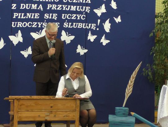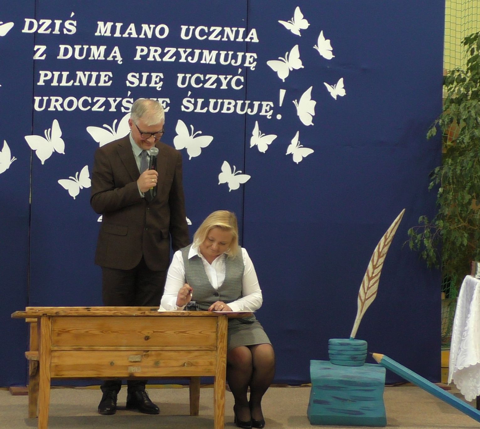 Dzieci z przekonaniem przyrzekały być dobrymi Polakami, pilnymi uczniami i rzetelnie wypełniać swoje obowiązki. Aktu pasowania dużym ołówkiem dokonał dyrektor Szkoły - Zenon Matuszewski. Następnie radni Gminy Brodnica: Kamila Maciejewska i Rafał Roman, dyrektor szkoły, wicedyrektor Larysa Lewandowska, przewodnicząca Rady Rodziców kl. I z Cieląt - Anita Grunwald, przewodnicząca Rady Rodziców kl. I z Gortatowa - Ilona Reńska, wychowawczynie klas I z Cieląt - Maryla Wolentarska, z Gortatowa - Renata Czarkowska oraz przewodniczące klas I z Cieląt - Alicja Szewczuk i z Gortatowa - Michalina Gołkowska, zaświadczyli o fakcie przyjęcia pierwszaków do grona uczniów szkoły, składając podpisy wiecznym piórem na Akcie Mianowania.