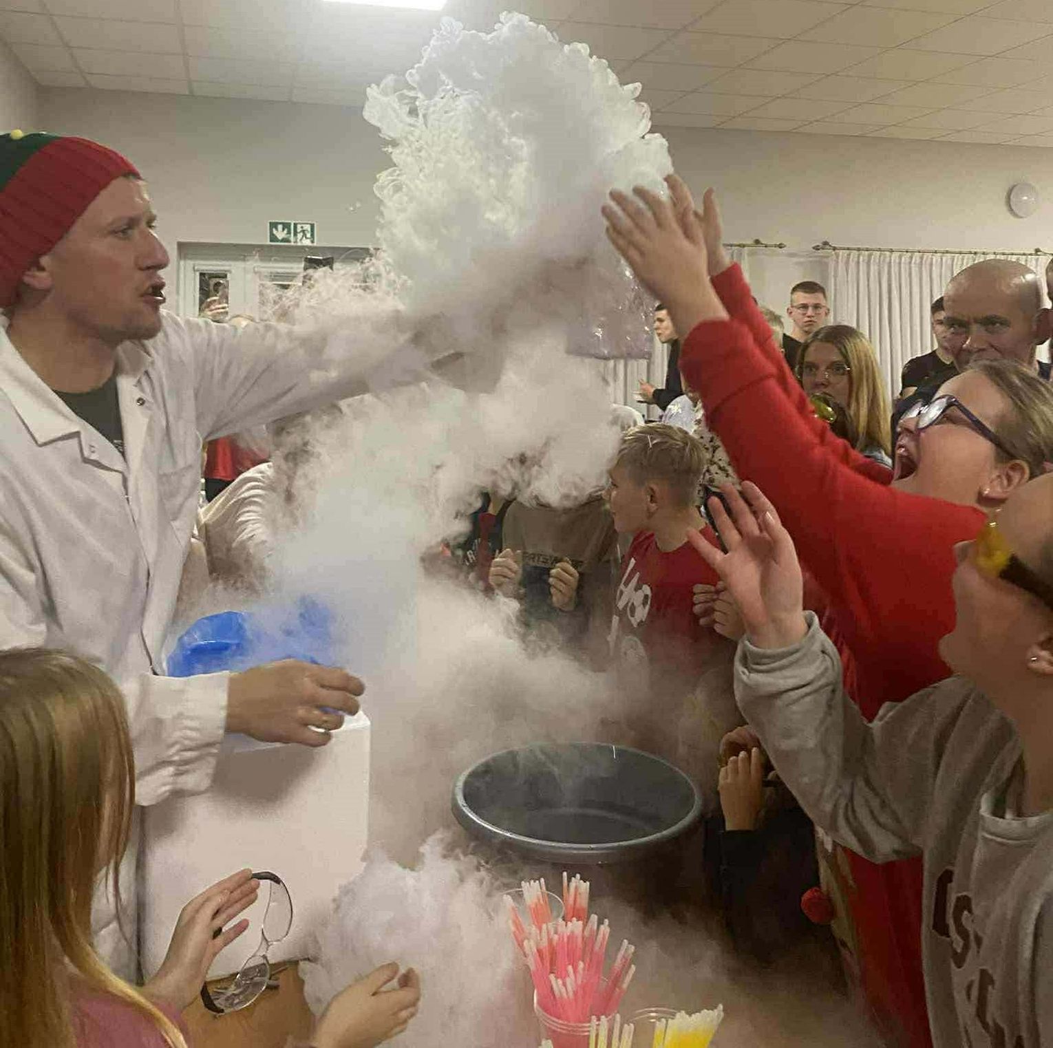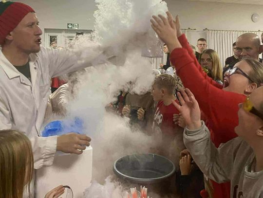 Dzięki współpracy z Gminną Biblioteką Publiczną w Szczuce odbył się również niezwykle widowiskowy zimowy pokaz chemiczny z wykorzystaniem ciekłego azotu. „Eksperymenty z Panem Bartkiem” zrobiły ogromne wrażenie zarówno na dzieciach, jak i dorosłych, łącząc naukę z dobrą zabawą. Nad bezpieczeństwem podczas wydarzenia czuwała OSP Szczuka – dziękujemy za obecność i wsparcie.Na uczestników czekał także poczęstunek, który umilił wspólnie spędzony czas. Wydarzeniu towarzyszyła wyjątkowa, rodzinna atmosfera i mnóstwo śmiechu.