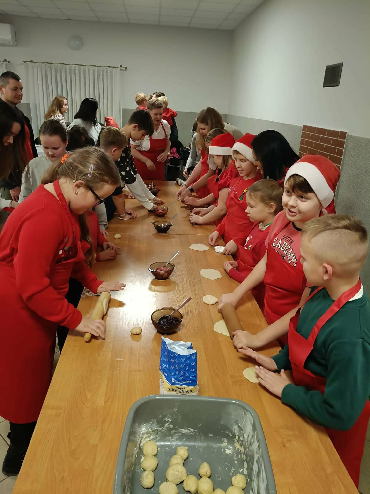 Wspólne świętowanie rozpoczęło się od lepienia pierogów przygotowanego we współpracy z Kołem Gospodyń Wiejskich z Dzierżna. Aromaty i domowa atmosfera szybko wprowadziły wszystkich w świąteczny nastrój. Największą atrakcją dla najmłodszych była oczywiście wizyta Świętego Mikołaja, który obdarował dzieci paczkami pełnymi niespodzianek.