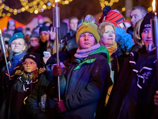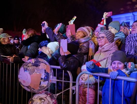 Niepowtarzalna gra świateł – po raz pierwszy w naszym mieście w tak znaczącym zakresie. Oświetlona została wieża zamku krzyżackiego – na czerwonym tle ukazała się grafika herbu miasta.