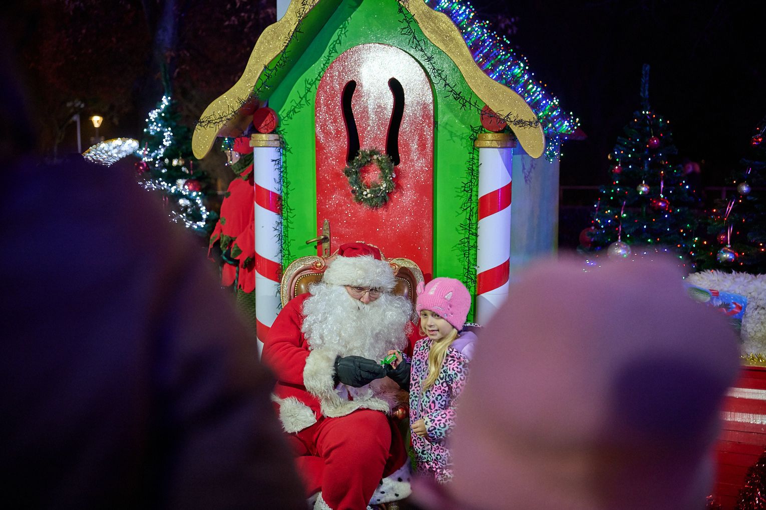 Rudolfem. Św. Mikołaj siedział przed swoją chatką z piernika, lukrowanego i zachęca do darmowego zdjęcia pamiątkowego. Natomiast Rudolf na początku był zniechęcony gwarem jarmarcznym w efekcie położył się unikając rozgłosu. Ale w pewnym momencie, na hasło swojej opiekunki, leniwie powstał i przeszedł się w zagrodzie.