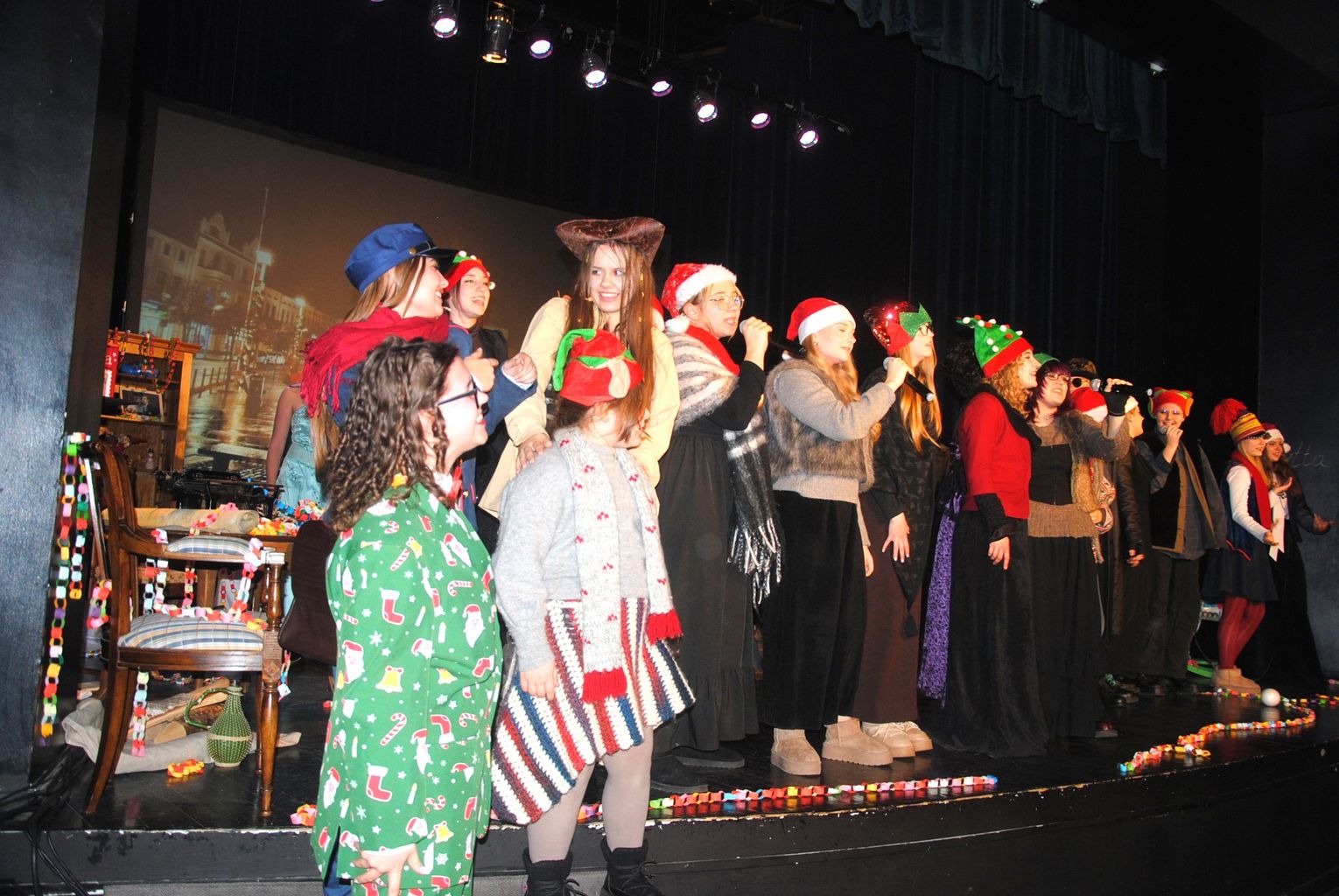 Wigilijne spotkanie uświetnił spektakl „Zanim nadejdzie dobro” w wykonaniu uczniów III Liceum Ogólnokształcącego w Brodnicy. Scena teatralna w BDK jest doskonałym miejsce dla poszukiwań teatralnych form, eksperymentów, jest swego rodzaju laboratorium. Zło, dobro, nienawiść, niezgoda, oszustwo – symbolika tych zjawisk została zaprezentowania w spektaklu, inspirowanego luźną animacją oskarowego „Klausa”, na podstawie twórczości jednego z pisarzy skandynawskich. Nawet motywy bajkowe z udziałem Klausa, czyli św. Mikołaja, bardzo ławo można było odczytać, nie pozostawały bezrefleksyjnymi.
