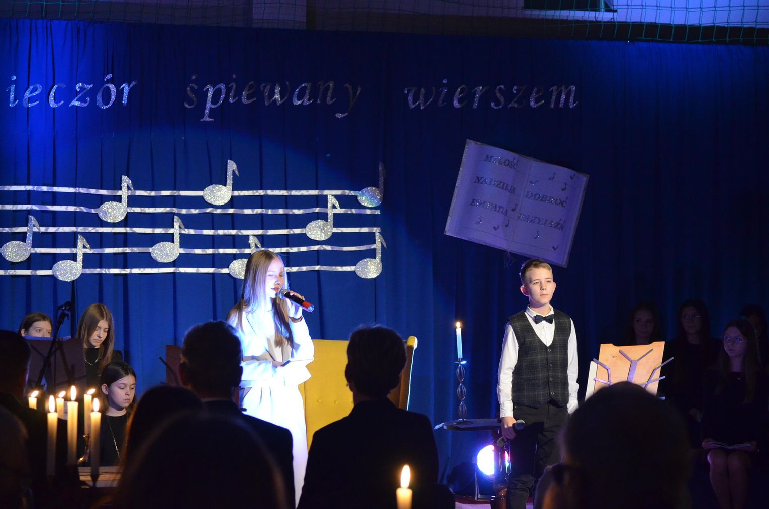W szkole w Szczuce sala sportowa wypełniła się po brzegi mieszkańcami gminy Brodnica i rodzicami uczniów. Przy stolikach ze świecami w kameralnym nastroju widzowie oczekiwali na popisy uczniów. „Wieczór śpiewany wierszem” – to tytuł spotkania poetycko-muzycznego, szóstego już z kolejnego wieczoru z poezją i muzyką w wykonaniu uczniów Szkoły Podstawowej im. Ziemi Michałowskiej w Gortatowie z siedzibą w Szczuce.