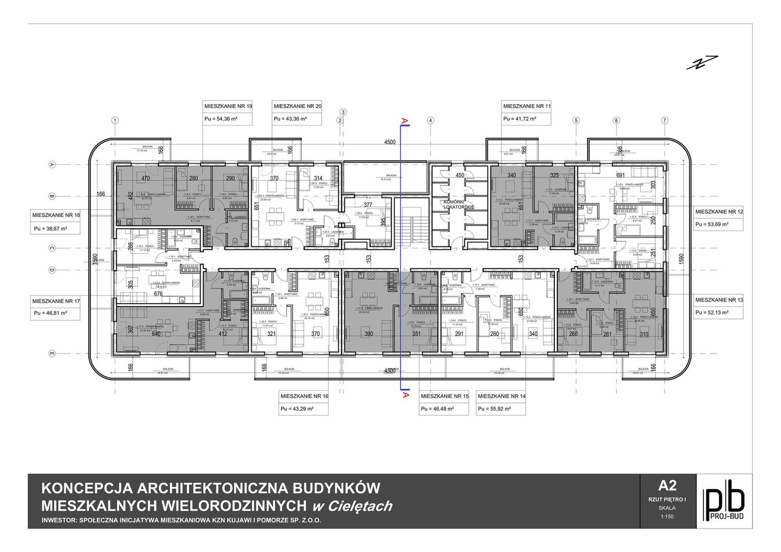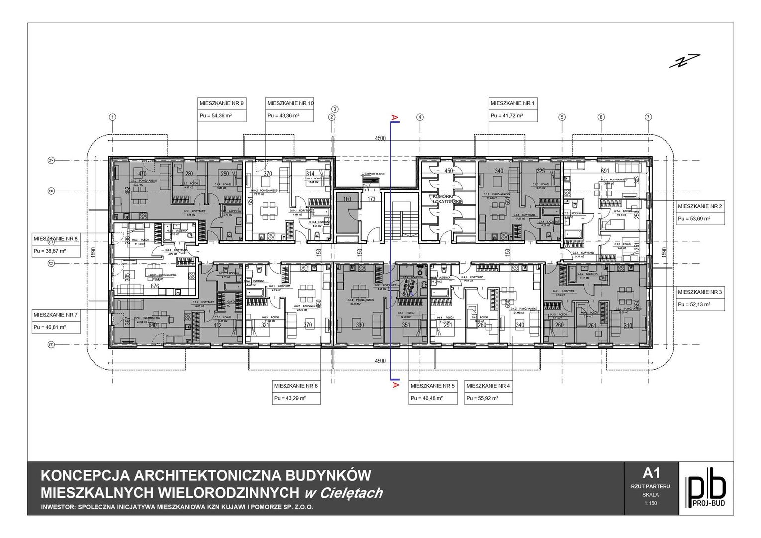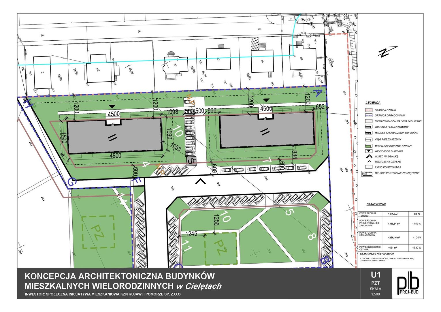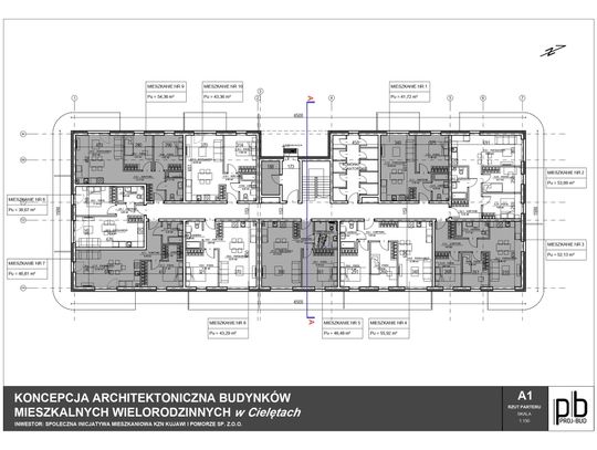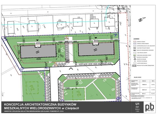 • W pierwszym etapie planowana są 2 budynki wielorodzinne, dwukondygnacyjne, po 20 mieszkań w każdym – łącznie 40 lokali.